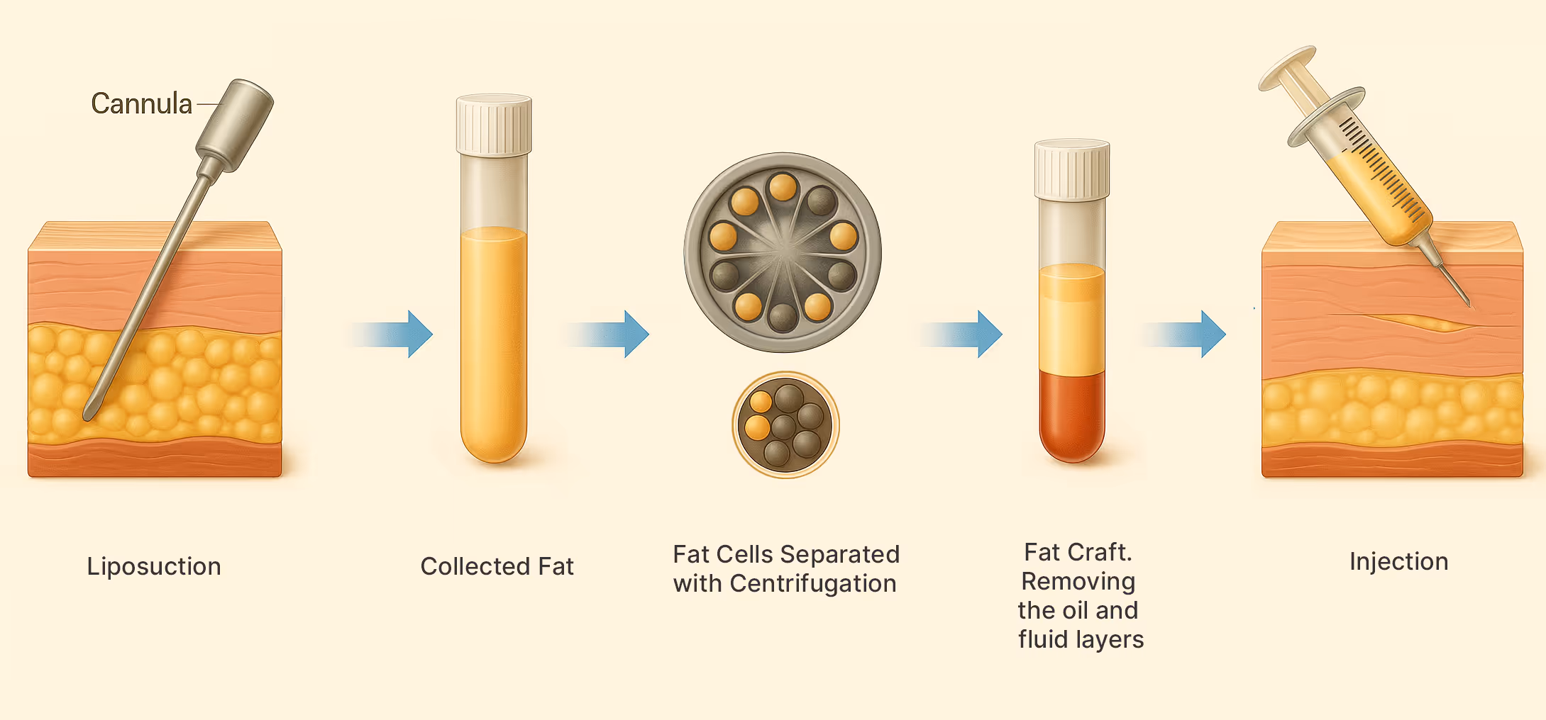 Contrairement aux implants ou aux produits de comblement synthétiques, la graisse est un tissu autologue — ce qui signifie aucun risque de rejet ou d’allergie. Avec une technique bien maîtrisée, les résultats sont naturels, durables et au toucher très doux.