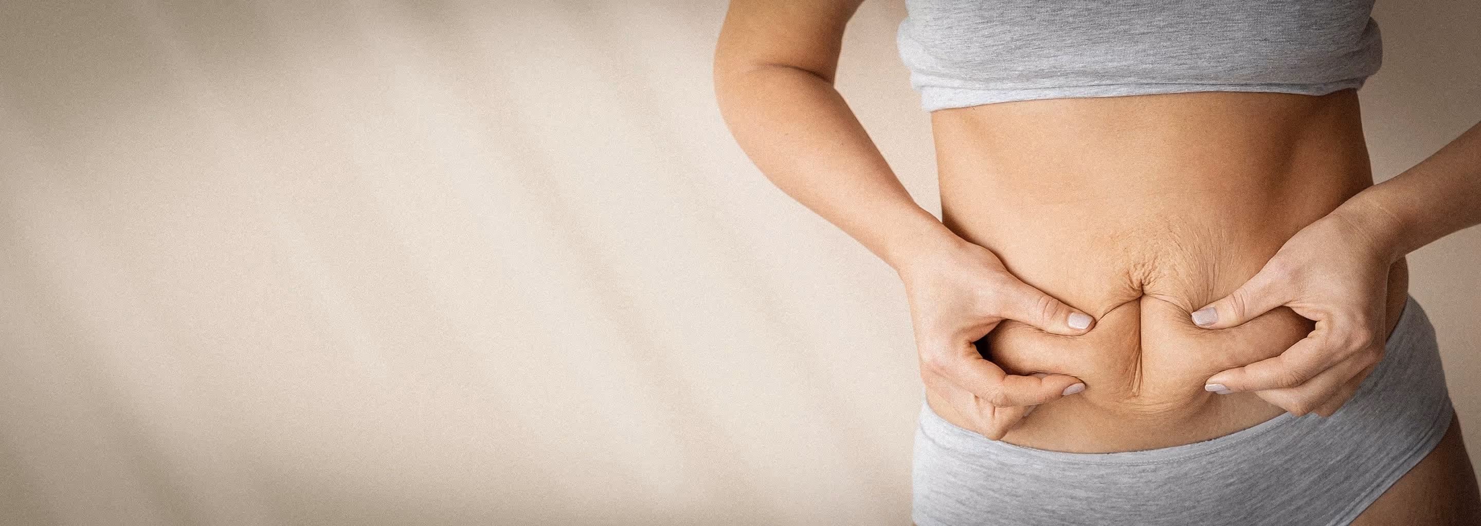 - Losse huid of een kleine welving in de onderbuik hebt die niet verbetert met dieet of beweging.